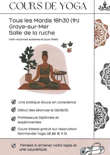 Normandie Yoga a pour objectif la réalisation de cours d'hatha-yoga, session de travail postural, de travail de la respiration, de méditation, de relaxation.